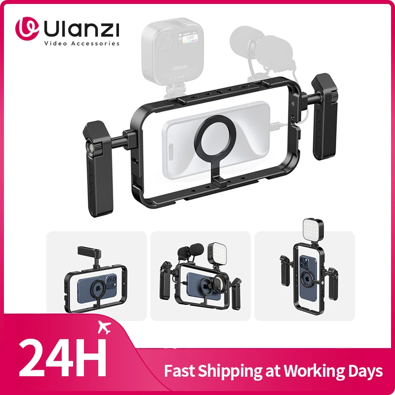 Ulanzi MG-001 Magnetic Phone Cage for iPhone 15 14 13 12 Mini Pro Pro Max Smartphone with Double-sided Magnetic Ring