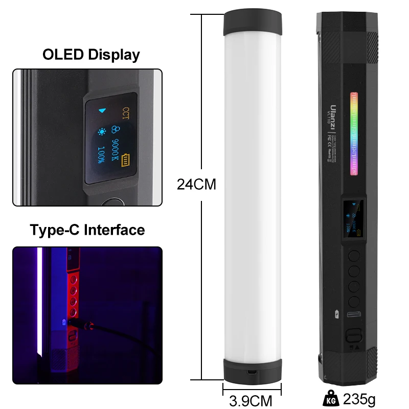 Ulanzi VL110 RGB Tube Photography Lamp 2500-9000K 2600mAh Rechargeable Portable Studio Camping Fill Lighting Kit For Youtube